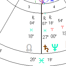 Mercury at 5°28’ and Moon at 27°41’—all in Pisces.